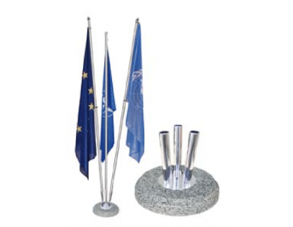 Haromágú zászlótalp protokollzászlókhoz kő alap, fehér színben
