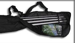Hordozó táska, amelyben egymásba helyezhető a 2-3 részes rudak valamint a zászlónyomat. A talpat felhasználástól függően választhat opcionálisan.