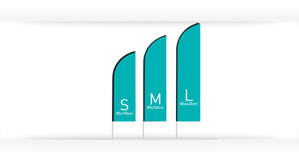 A Beachflag egyik nagy előnye, hogy kis helyigényűek, mégis nagy reklámfelületet biztosítanak. Könnyen összeszerelhetőek és szállíthatóak. Kínálatunkban három féle méretben (S, M, L) is elérhetőek a strandzászlók, melyekhez hordozótáska is kapható a könnyebb szállíthatóság érdekében.