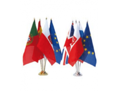 Négyágú, ezüstszínű asztali zászlótap protokollzászlókhoz